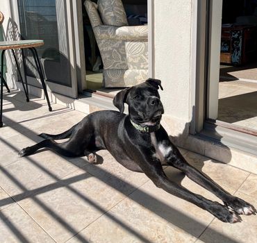 She’s the best mix of playful and calm. MaCherie enjoys toys, chewing on bones, training with treats, and getting her energy out in the yard or on walks — and then she’s perfectly content to curl up nearby and snooze, preferably with her head resting on your foot.
